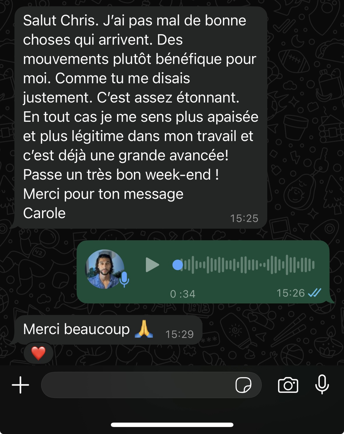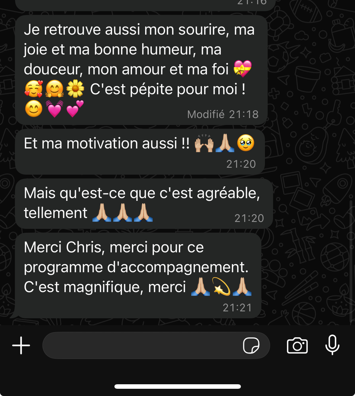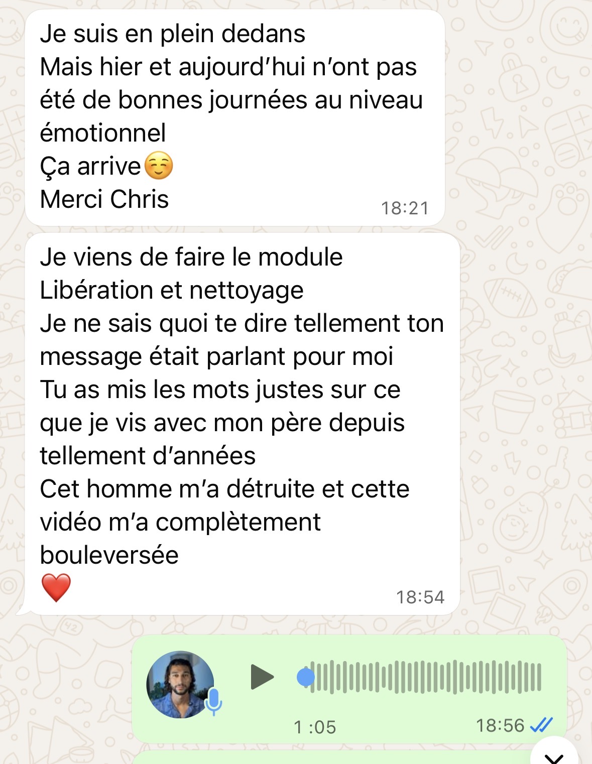 Il y a également certaines des méditations que j’ai directement canaliser de mon Higher self, Mon moi supérieur et c’est comme si j’avais reçu l’indication que je devais absolument partager ça dans ce cours pour que tu puisses te libérer de la même manière que j’ai pu le faire par le passé