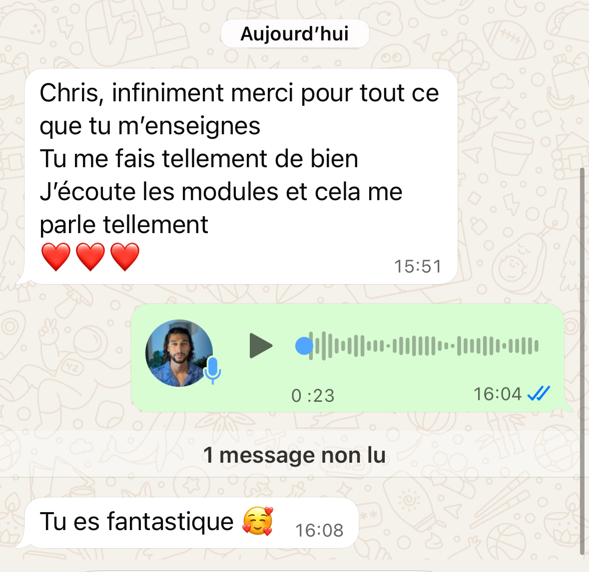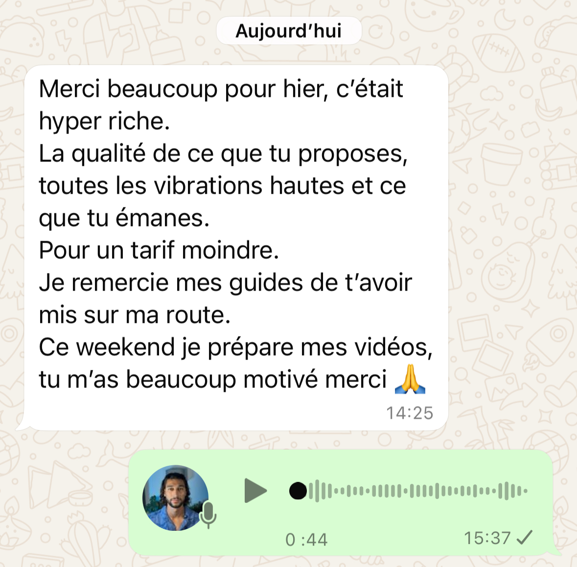 Ce n’est pas juste un cours en ligne c’est un véritable chemin initiatique que j’ai voulu offrir, tout ce qui se trouve dans ce cours proviens de mes expériences personnelles et spirituel que j’ai vécu depuis mon enfance jusqu’à aujourd’hui